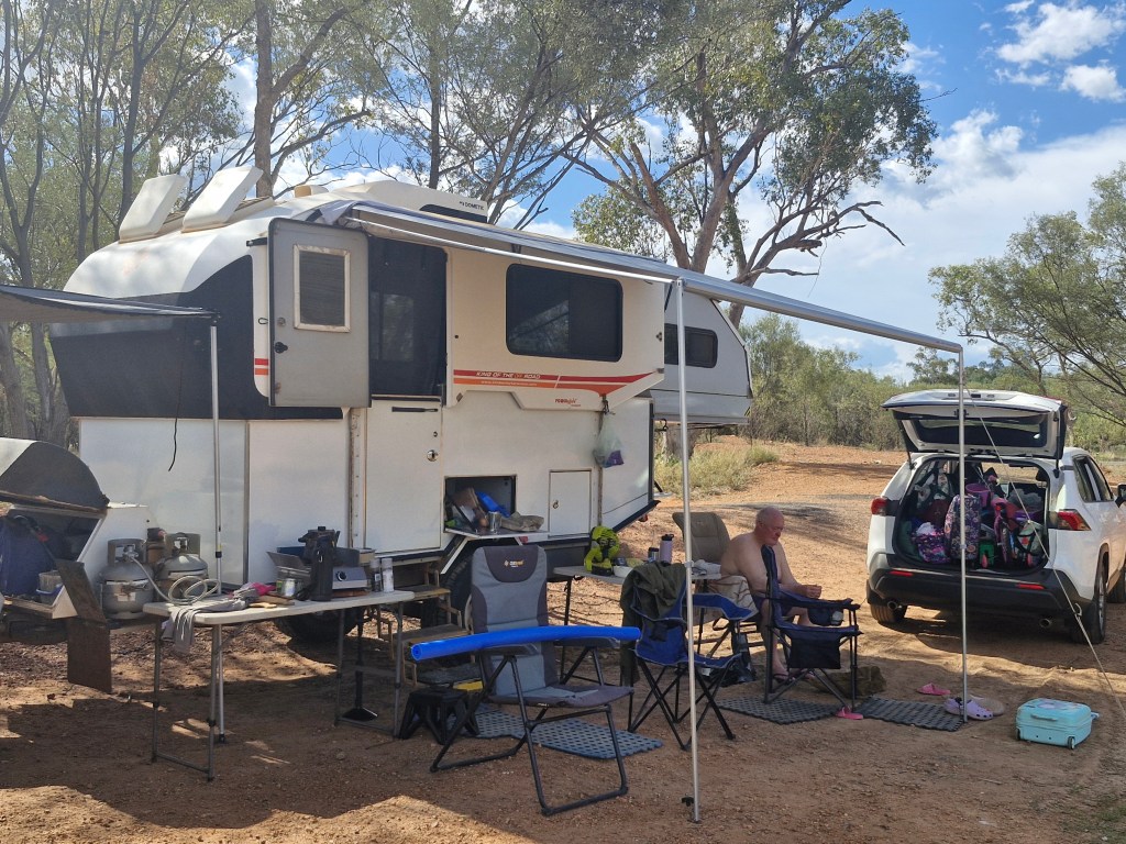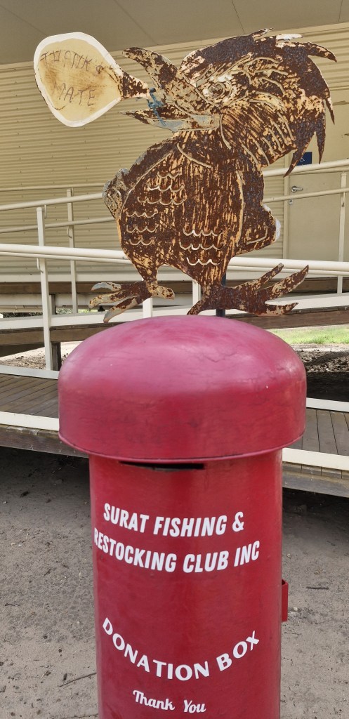 Catherine & Georgia arrived on the Sunday 28th December at Plevna Station, Augathella, the following day we drove to Rock Hole just outside of Charleville, and had a beautiful overnight camp and great fun in the waterhole. Next stop was Surrat on the Balonne river, great spot, we camped up on the boat ramp side & spent many hours in the water. There was a great ablution block, BBQs, fire pits, picnic tables & a cute donation box across the road in a large free park – Fishermans Park which was being utilised by a number of campers & caravans. After Surrat, Catherine & Georgia went home to Beenleigh, Peter & I to Ipswich, got to visit family for 7 days then Pittsworth for a couple of great nights with rellies. A quick trip to Mt. Isa trying to beat the flooded roads then onto Darwin. Along the way we camped up at at Wallumbilla Showgrounds, another amazing free camp located 40klms east of Roma & 380klms west of Brisbane.