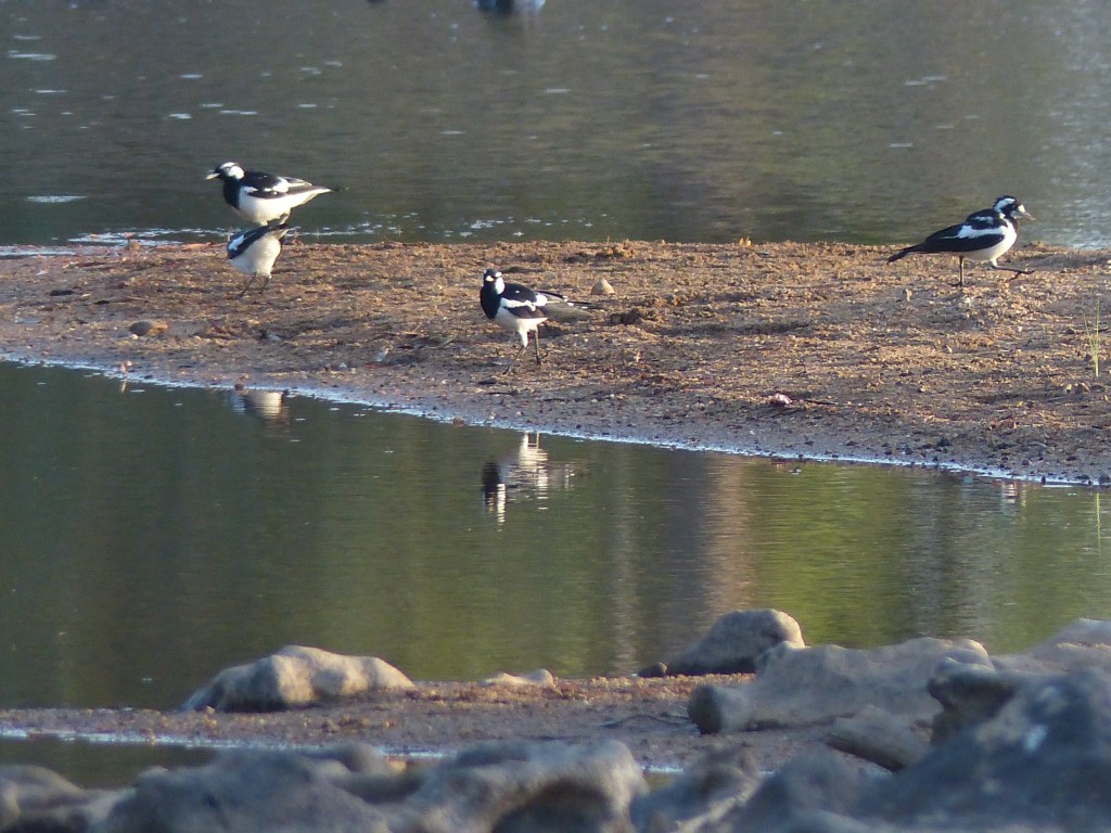 Not sure if this fellow was a ‘great egret’ or the ‘intermediate egret’, I imagine he would be the 2nd one as they are very common in the northern areas of Australia ……..? But still an awesome bird.A Hawkins side tipper, carting gravel from Normanton to Kowanyama approximately a 5 hour drive each way.JabiruBurdekin ducks on a mission.Happy snappers always around.Sunrise, what a beautiful time of day.Jabiru – what a magnificent bird.Woo ho – not a bad catch – approx a dozen all up, dinner to toniteI think fellow saw a Happy snapper & ?????????On the road again, this road train was going a little faster than us so we pulled over.Passed quite a few brumbies.Our camp – Mitchell river.This causeway is covered in a type of matting – quite interesting.There was quite a few crows.Lotz of kites keeping an eye on things.Honeyeaters in big numbers.The doves were plentiful & put quite show on while I was drinking my cup of tea.Wild mangrove flower.Small seed pods growing wild over a dead tree – Loofah (Luffa Aegyptiaca)On the road again, the road was very good.Quite a few moo’s along the way.Our next stop, Hughs Crossing – Mitchell River again, approximately 100klms from our last camp.We had an amazing camp site.This fellow flew across the causeway empty & came back an hour later loaded up with cattle.The pee-wee’s were having a great time.More Burdiken ducks.Our catch overnite.It was a fantastic camping spot.