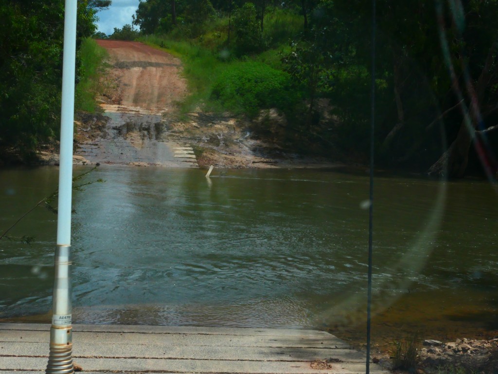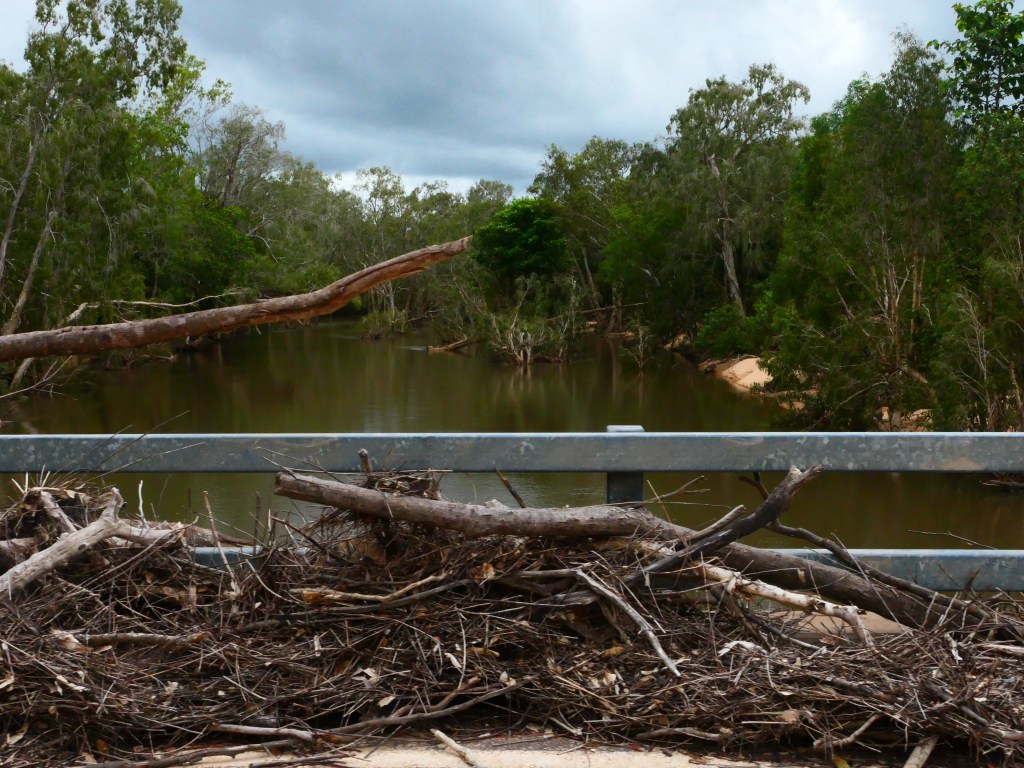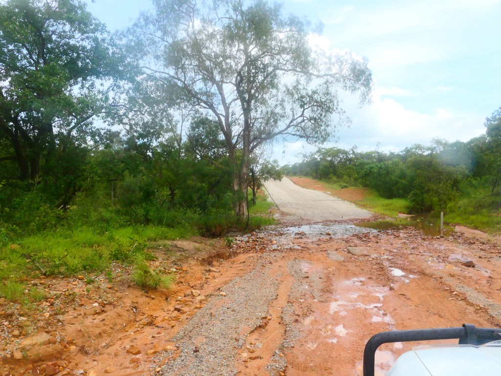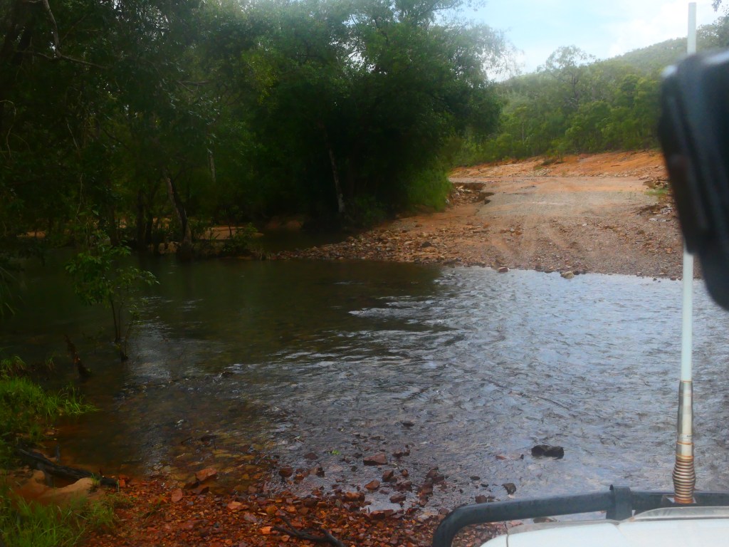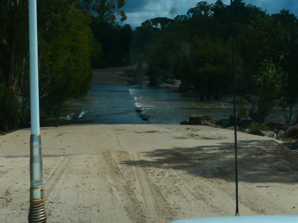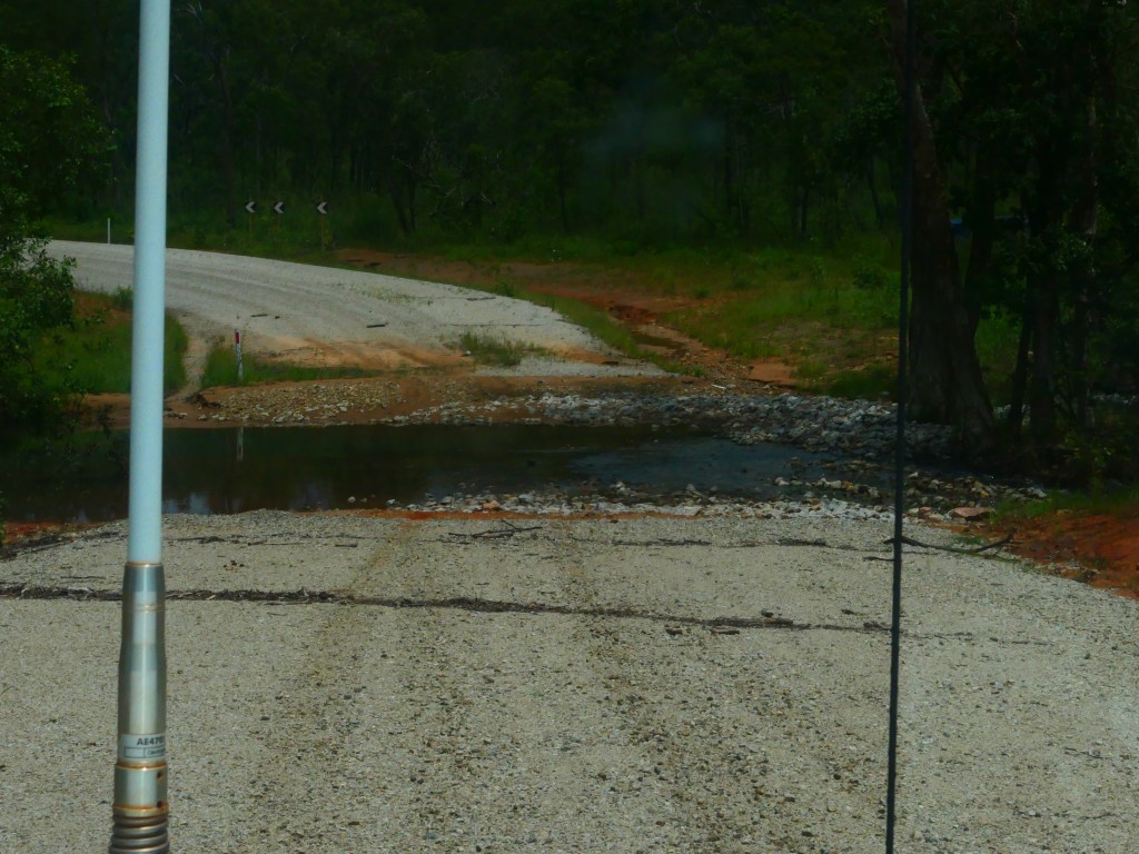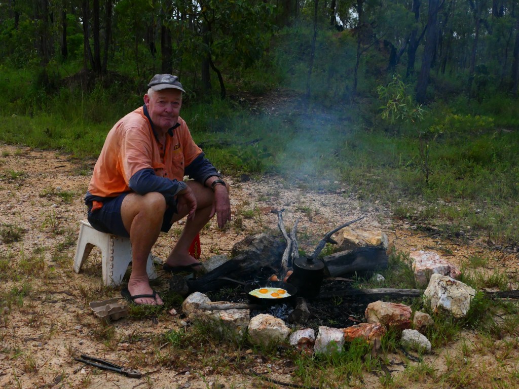 Yea – we made it, but it was quite hairy, wouldn’t like to have to repeat that experience. There was lotz of water crossings & major washouts in places but we just went along nice & steady. The Wenlock River was running quite fast but not as deep as the Pascoe & not as wide. Once we got to the Peninsula Development Rd (PRD) & crossed over the Archer River, the hardest part was over, but the road was washed out in many places & lotz more water crossings – but we just toddled along. It was quite lovely, gave us lotz of time to smell the roses along the way. We camped overnite ‘somewhere’ between Coen & Musgrove Station – it was a nice spot, 4 small ponds, gravel base & plenty of fire wood – our biggest problem being it started to rain & didn’t stop, hahah. Breakfast was awesome.