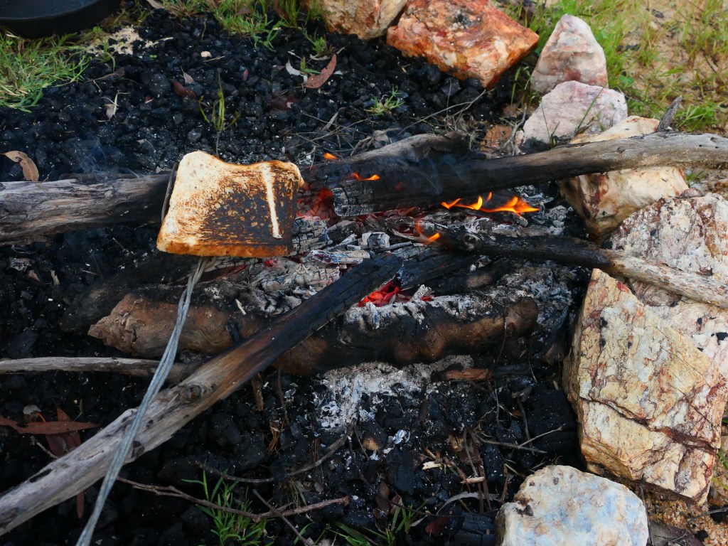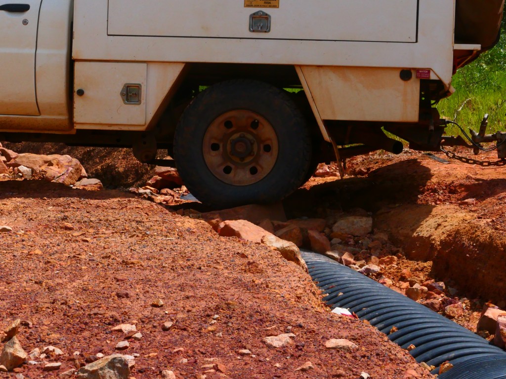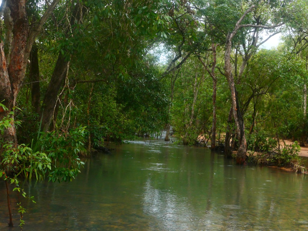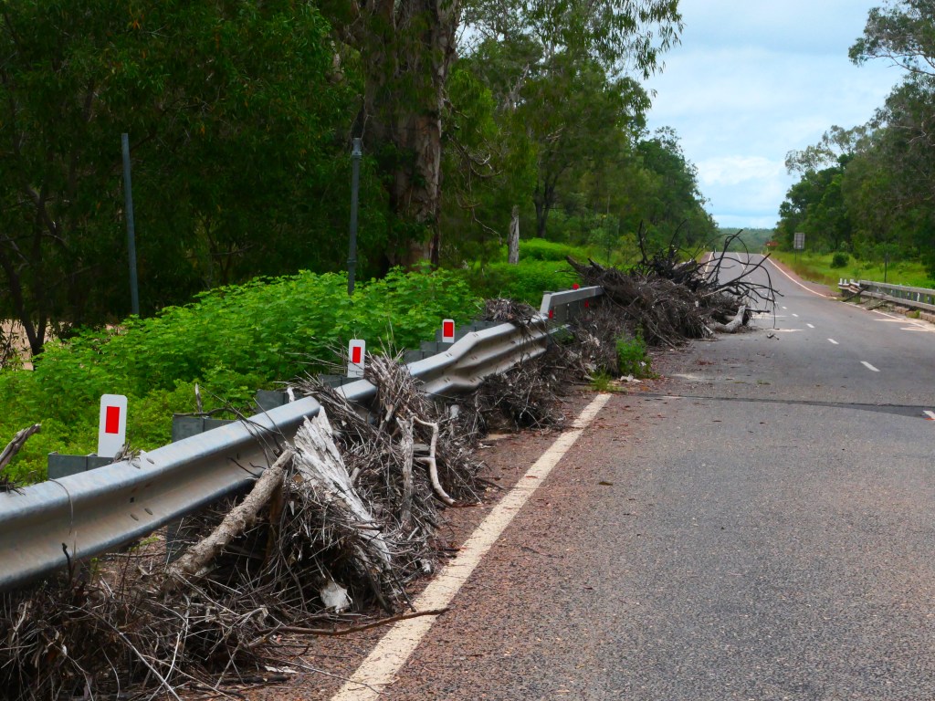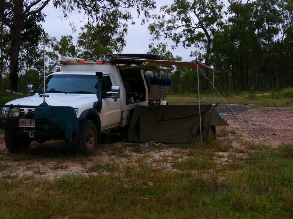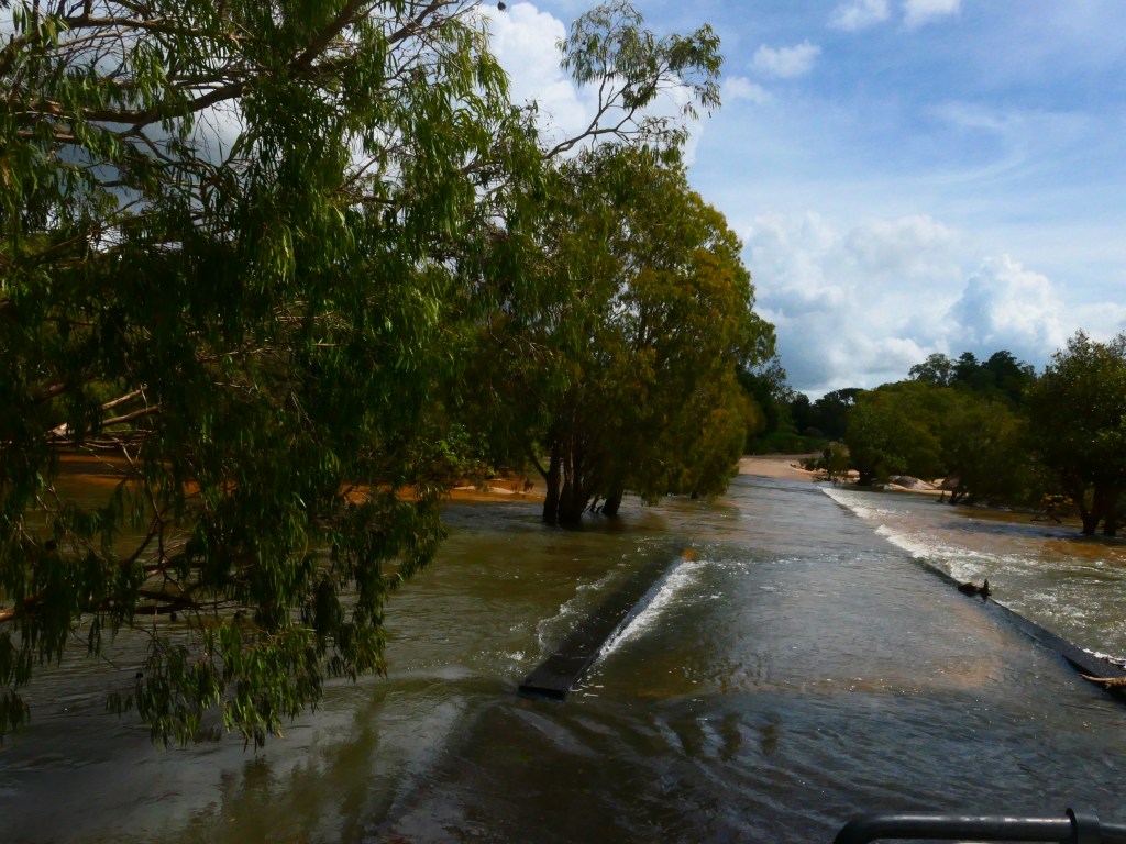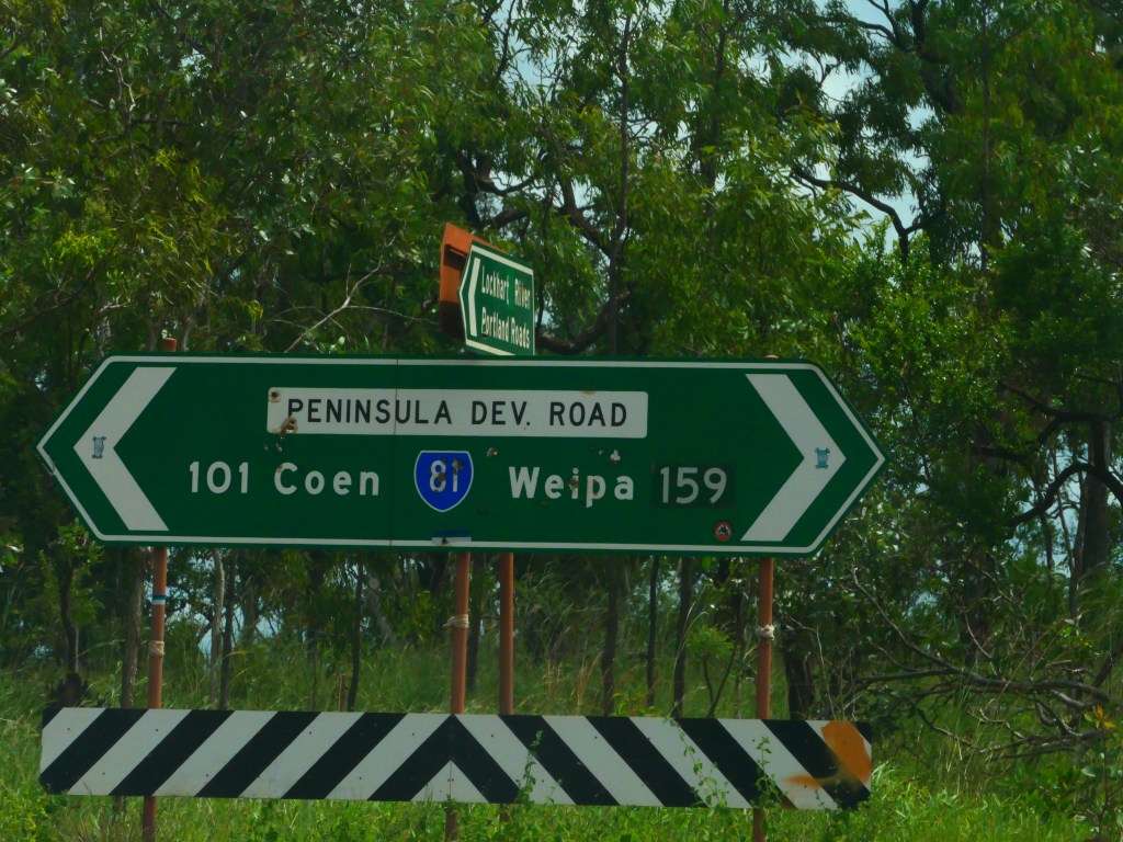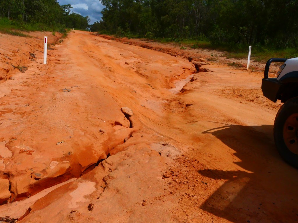 Yea – we made it, but it was quite hairy, wouldn’t like to have to repeat that experience. There was lotz of water crossings & major washouts in places but we just went along nice & steady. The Wenlock River was running quite fast but not as deep as the Pascoe & not as wide. Once we got to the Peninsula Development Rd (PRD) & crossed over the Archer River, the hardest part was over, but the road was washed out in many places & lotz more water crossings – but we just toddled along. It was quite lovely, gave us lotz of time to smell the roses along the way. We camped overnite ‘somewhere’ between Coen & Musgrove Station – it was a nice spot, 4 small ponds, gravel base & plenty of fire wood – our biggest problem being it started to rain & didn’t stop, hahah. Breakfast was awesome.