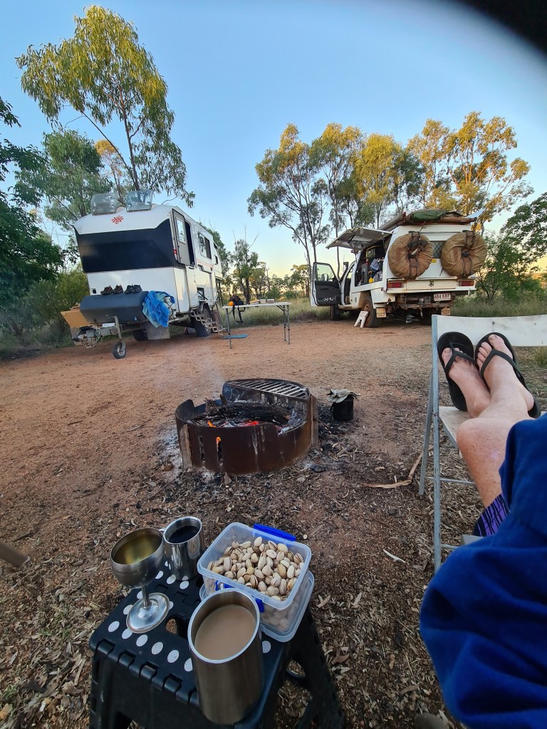 Camped up at Porcupine Gorge National Park for the night (you have to book online these days to stay the night at NP – but well worth it). We had a great camp, went for a walk down into the gorge & had a quick paddle, once your shoulders were under it was lovely…..