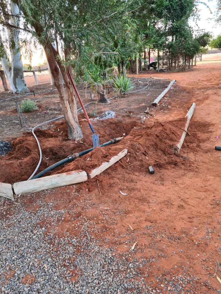 Irrigation washouts, poly pipe splitting probably from old age & various other leaks happening – repair of these is a common & popular job to be undertaken – Peter loves these jobs…… Watering the grass & gardens is a regular job also but quite enjoyable. Since the cattle have starting to arrive at the station Peter has been busy checking waters & fence lines – he is really enjoying this.