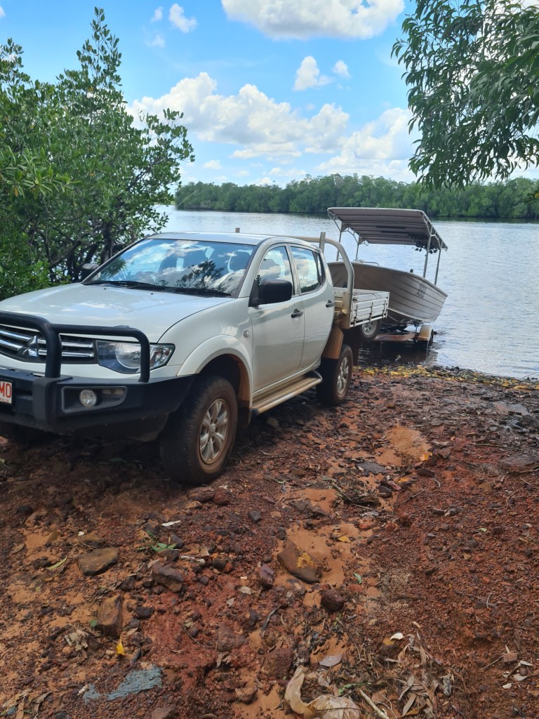 4 months gone already, Milikapiti is very enjoyable. We work reasonably hard but we do get to go out in the boat every Sunday & Monday which makes life pretty good. Now that we have a 4WD that actually goes into 4WD -life is good. There is a local croc that resides at the boat launching area so we do keep our eyes peeled while launching & retrieving the boat, about 2 weeks ago while Peter was parking the ute & trailer, I saw the croc about 10mts away, definately makes your hair curl.