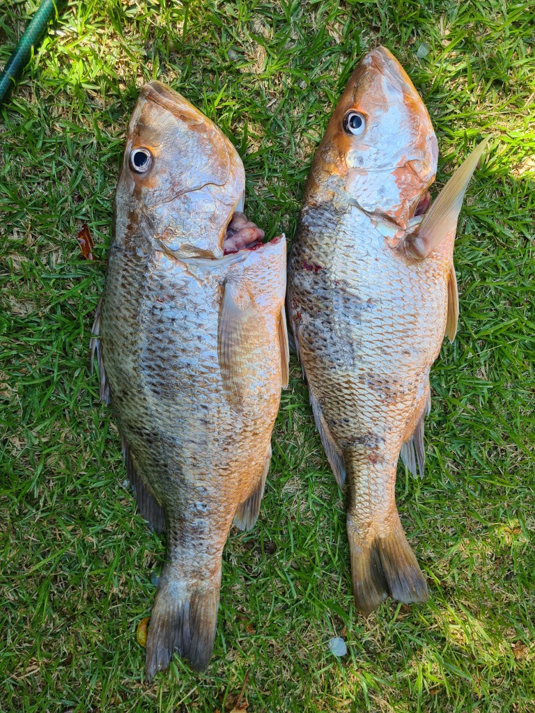 WOW! We didn’t fish for long, no need, 2 big beautiful Golden Snappers (fingermark), the we put the crab pots in & went home.