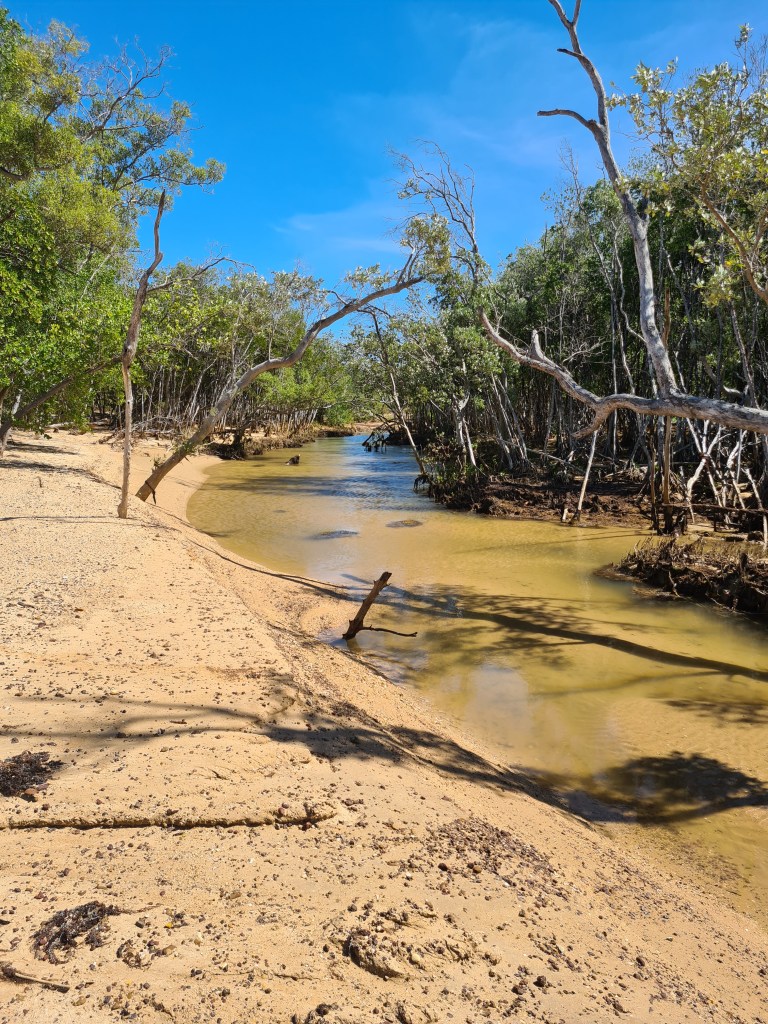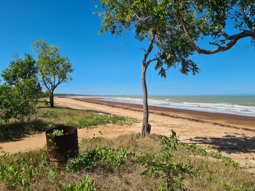 4th July, we went for a drive to southern part of Melville Island – Pitijmirra, the Tiwi College is located down here as well as a few outstations (a handful of people SOMETIMES live at outstations but usually use them as a holiday house), we drove through the outskirts of the college property to the beach eventually. They have a pretty good setup at the college, its for high school aged children who live in Milikapiti, they are collected on Mondays & are returned to the community on Fridays, the college is well staffed & caters for the kids while in their care. There is a freshwater creek(Takamprimili Ck) on the outskirts of the college which is a very popular swimming hole for the school & residents, although they have recently set up a crocodile trap slightly upstream as there was a siting of a croc, this creek runs all the way to the ocean.