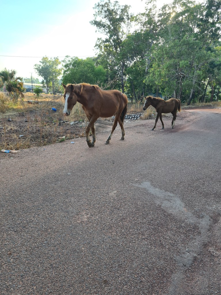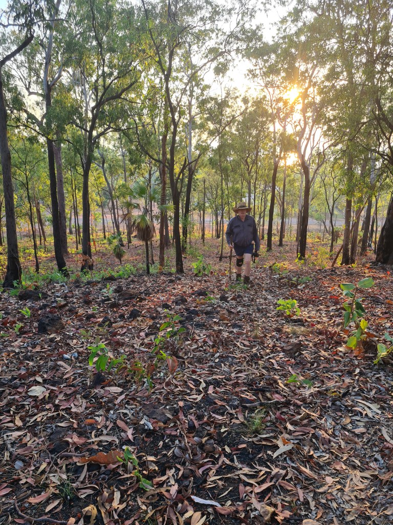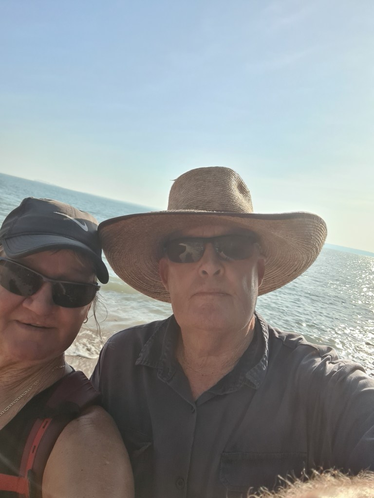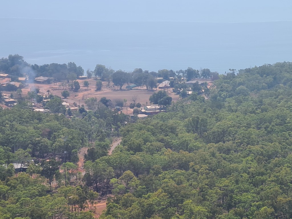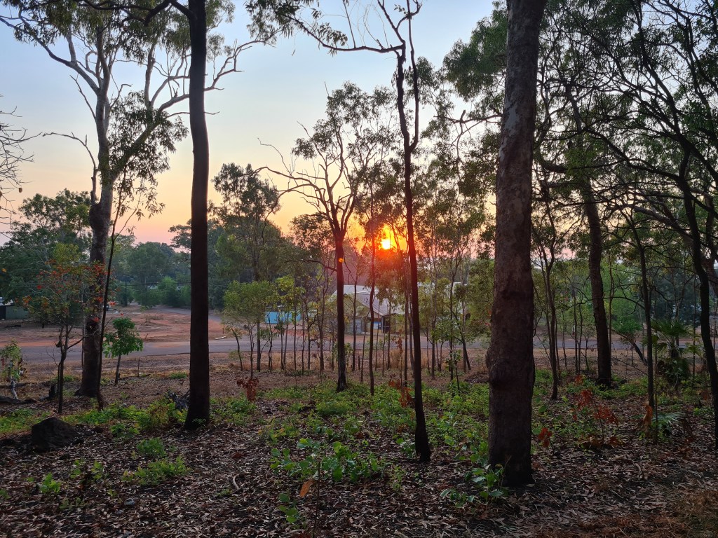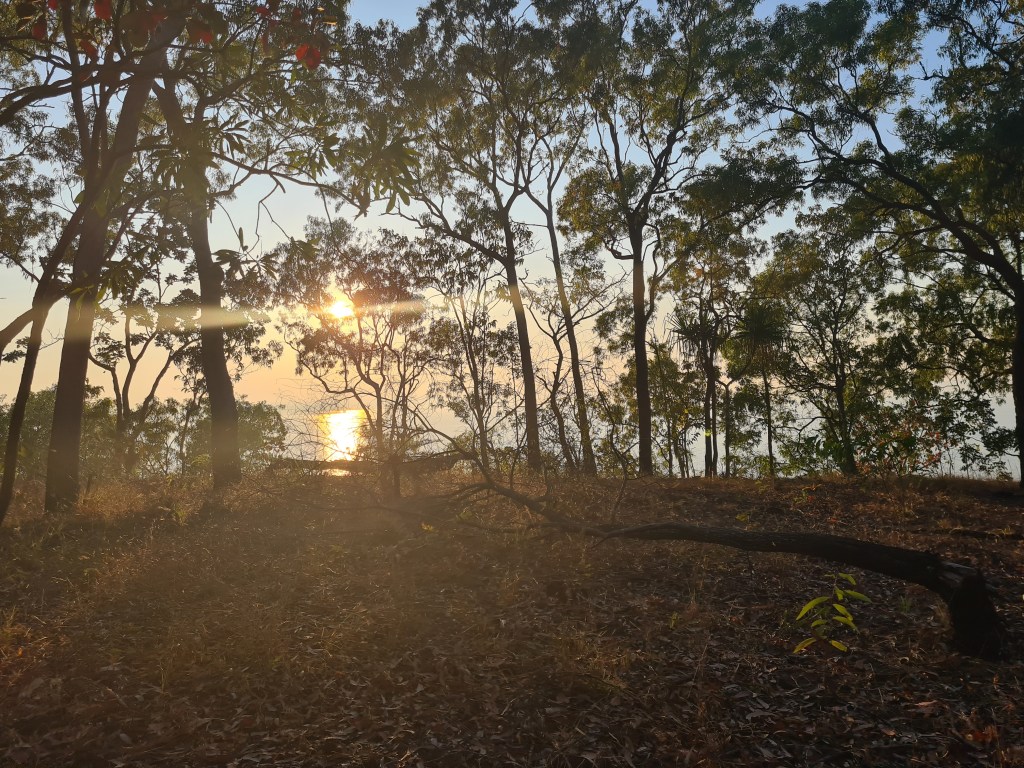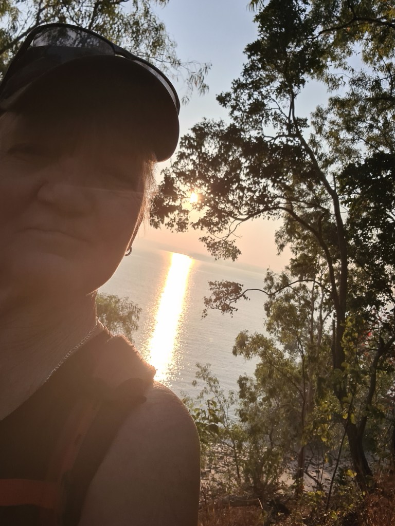 Met Lady GaGa & Arthur on my walk, Lady Ga Ga has been around since before we first came here, Arthur is a new addition & follows her everywhere, they are always together these days. The sun just coming up – what a beautiful time of the day. Peter enjoyed his last walk at Milikapiti, Thursday 21st July, we did a circuit walk & came out just after the barge landing so we had a few hundred metres of beach walking. I walked Friday & Saturday morning then donated my walking shoes as I had glued them several times & they weren’t happy… Saturday I walked down towards Tim Ram Boo, a popular fishing spot for the locals, overlooking Snake Bay, it was lovely.