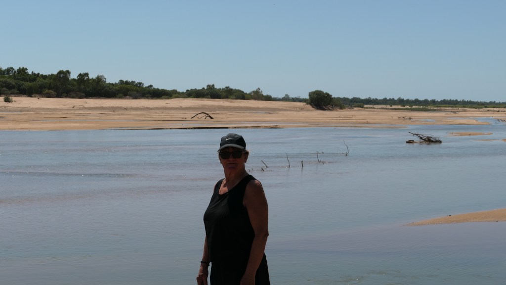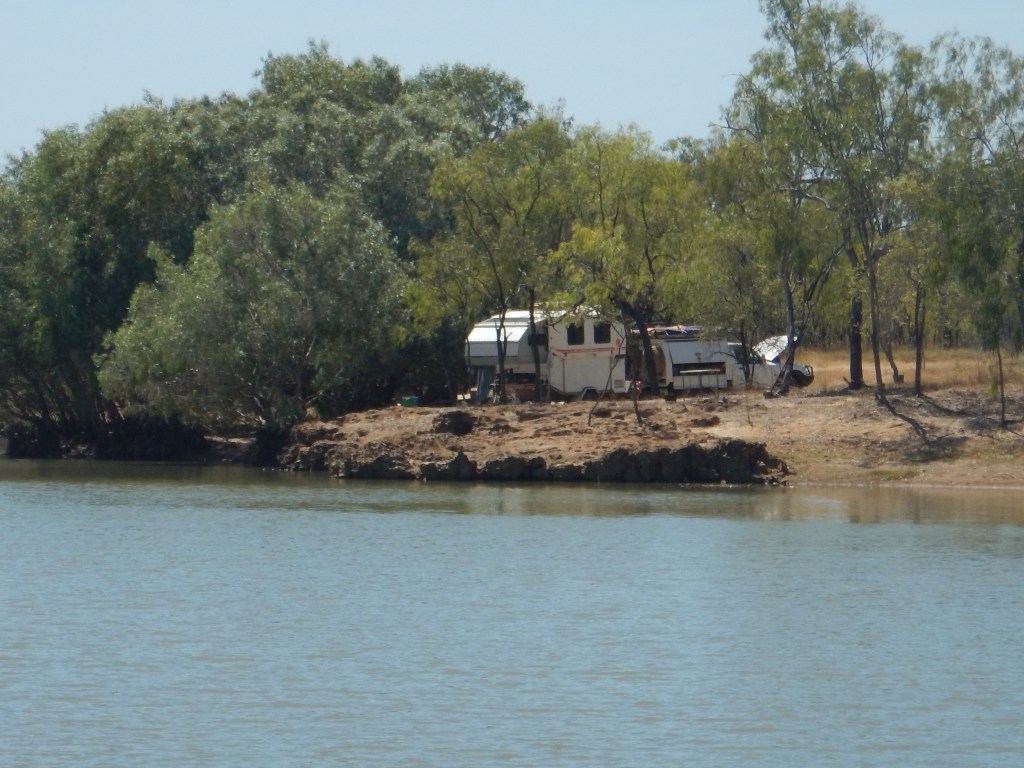 Then on the road again aiming for Mentana Creek which is on Dunbar Station, we were lucky enough to be allowed to camp there, my cousins Danny & Julie know the manager so after a phone call we had the go-ahead. It was a great camp, just us & a few fresh water crocs, 3 amazing sea eagles & a few kite hawks & of course cherabin & barramundi….. We managed to catch 4 barra keepers & quite a few cherabin, we did lose a lot of bara but had fun trying, did catch a sooty grunter, a sleepy cod & numerous catfish – we had a great time, did lotz of walking. On 1 of our walk we saw the largest brolga’s we have ever seen, so tall. The bird life was great, the sea eagles are a magnificent bird & very clever, we used to put our fish frames & fish heads(separated) out on some rocks near our camp, they always knew & very rarely ever let another bird take them. Our breakfast usually consisted of toast plus whateva but thanks to Neil(another cuz) we have a great toasting implement.