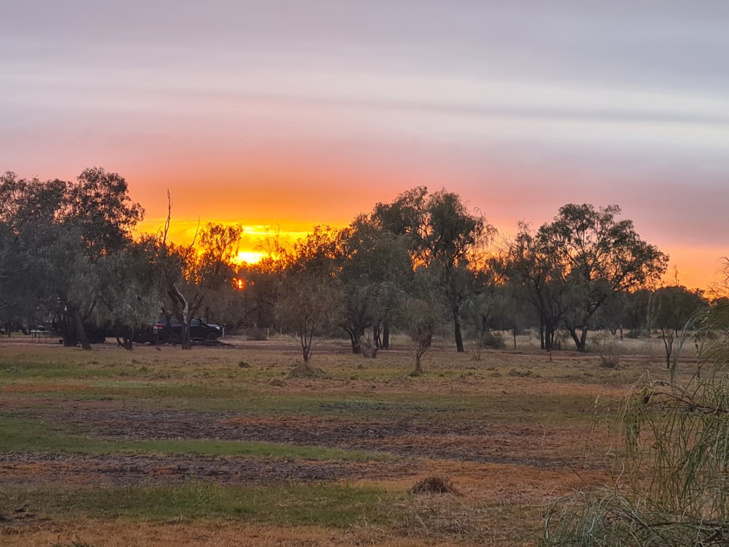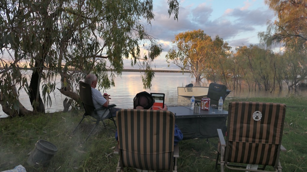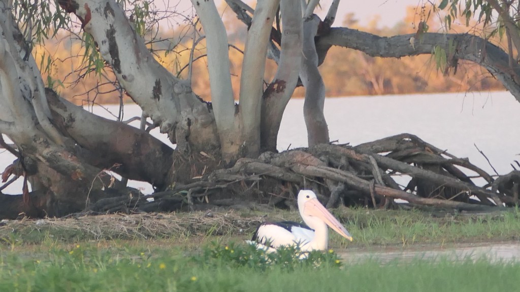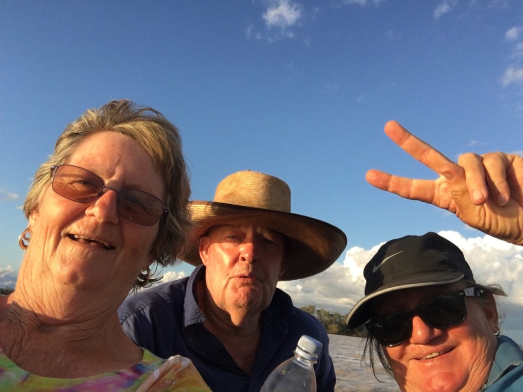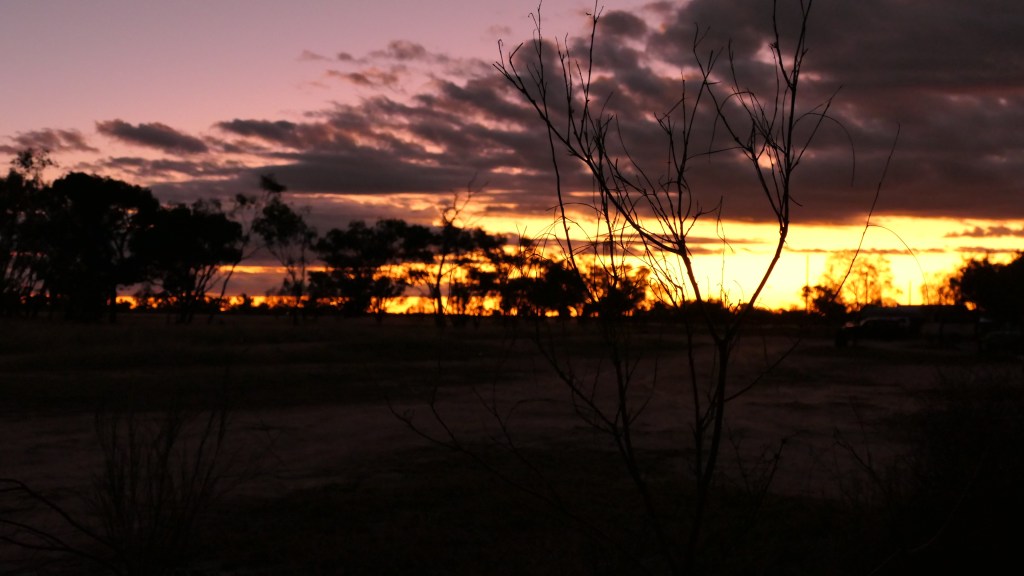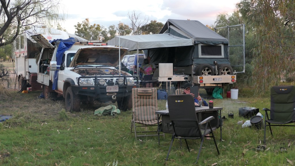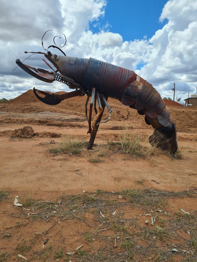 Lake Dunn also known as Pajingo Bola, meaning ‘Big Fella Waterhole’ is the only wetland area in Central Queensland & consequently home to a large waterfowl population, it is located in Upland & approximately 63klm NE of Aramac. It is located one third of the way along the well-known sculpture trail, the redclaw (yabbie) is at Lake Dunn. Its a very popular spot for campers, fishers, water skiers, bird watchers & picnic-ers. There is a reserve next to the camping area where there is several tennis courts, a basket ball court, a concrete cricket slab (in the middle of a paddock), kids play area & a resonably sized club house with power, apparently the Ballynetty Recreation Club hold a few ‘big’ events here every year. Gary & Mary (Peters sister) & Storm the dog arrived & stayed for 2 nights – it was great to see them again. The last few days we were at Lake Dunn, it was very windy & cool so we only went out in the boat mid-afternoon to collect the ‘catch’ of redclaw……..not many in numbers but quite large in size, there was a mix of redclaw & blue claw. Rae cooked them up to perfection & we all managed to have a pre-dinner feast, very enjoyable.