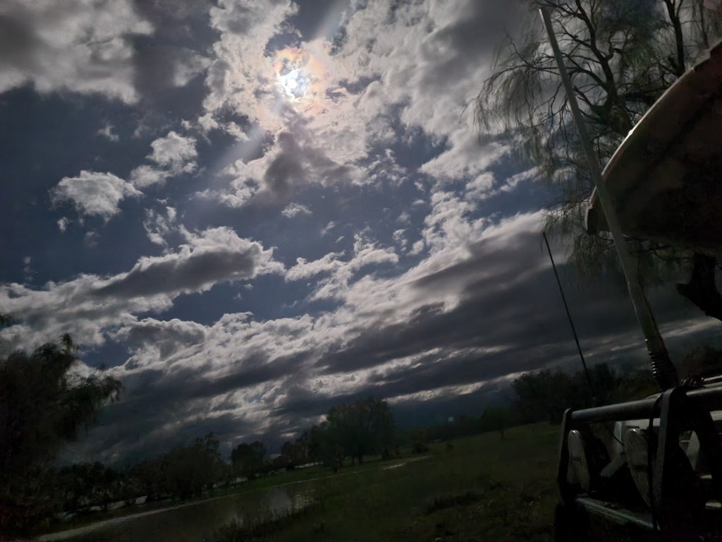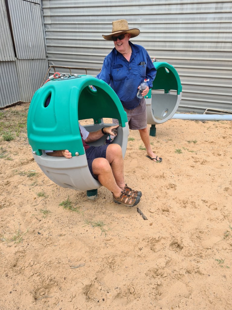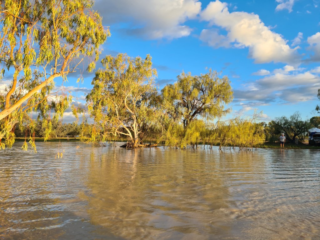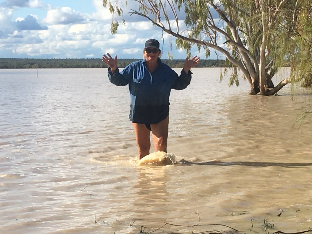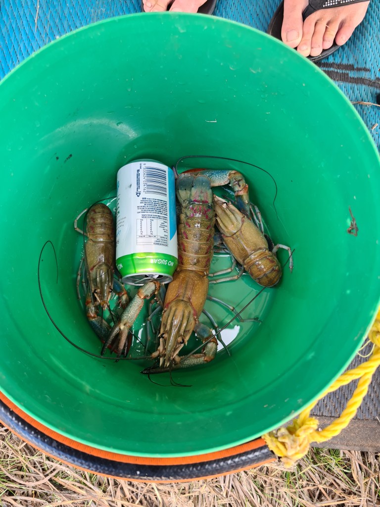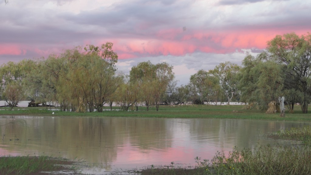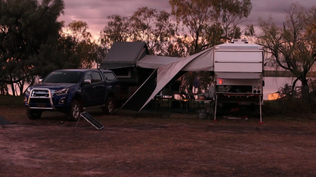 Lake Dunn also known as Pajingo Bola, meaning ‘Big Fella Waterhole’ is the only wetland area in Central Queensland & consequently home to a large waterfowl population, it is located in Upland & approximately 63klm NE of Aramac. It is located one third of the way along the well-known sculpture trail, the redclaw (yabbie) is at Lake Dunn. Its a very popular spot for campers, fishers, water skiers, bird watchers & picnic-ers. There is a reserve next to the camping area where there is several tennis courts, a basket ball court, a concrete cricket slab (in the middle of a paddock), kids play area & a resonably sized club house with power, apparently the Ballynetty Recreation Club hold a few ‘big’ events here every year. Gary & Mary (Peters sister) & Storm the dog arrived & stayed for 2 nights – it was great to see them again. The last few days we were at Lake Dunn, it was very windy & cool so we only went out in the boat mid-afternoon to collect the ‘catch’ of redclaw……..not many in numbers but quite large in size, there was a mix of redclaw & blue claw. Rae cooked them up to perfection & we all managed to have a pre-dinner feast, very enjoyable.