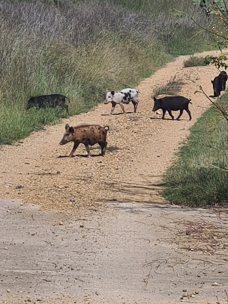 Drove approximately 60klms west of Tenterfield to where Mary & Gary were helping a friend on their farm while they were going to be away. WOW – what a beautiful property but also lotz of work to get it back to a good working farm. The property situated on 2 rivers -the Mole & the Dumaresq. Cows, dorper sheep (wool shedding sheep grown for meat) & few ponies & collie dogs. There was also wild pigs, deer & goats roaming the properties. But the walks Mary & I did were fantastic(although not always easy).