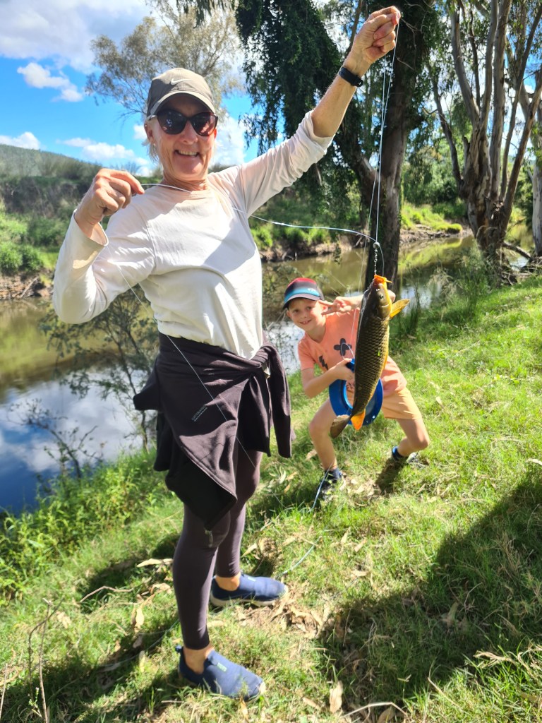 Daniel & Stanley(Mary son/grandie) arrived after 2 days & the fishing comp was on….Dan got a nice murray cod, quite a few carp caught, Peter &Stanely caught some nice yellow belly; a good time had by all.