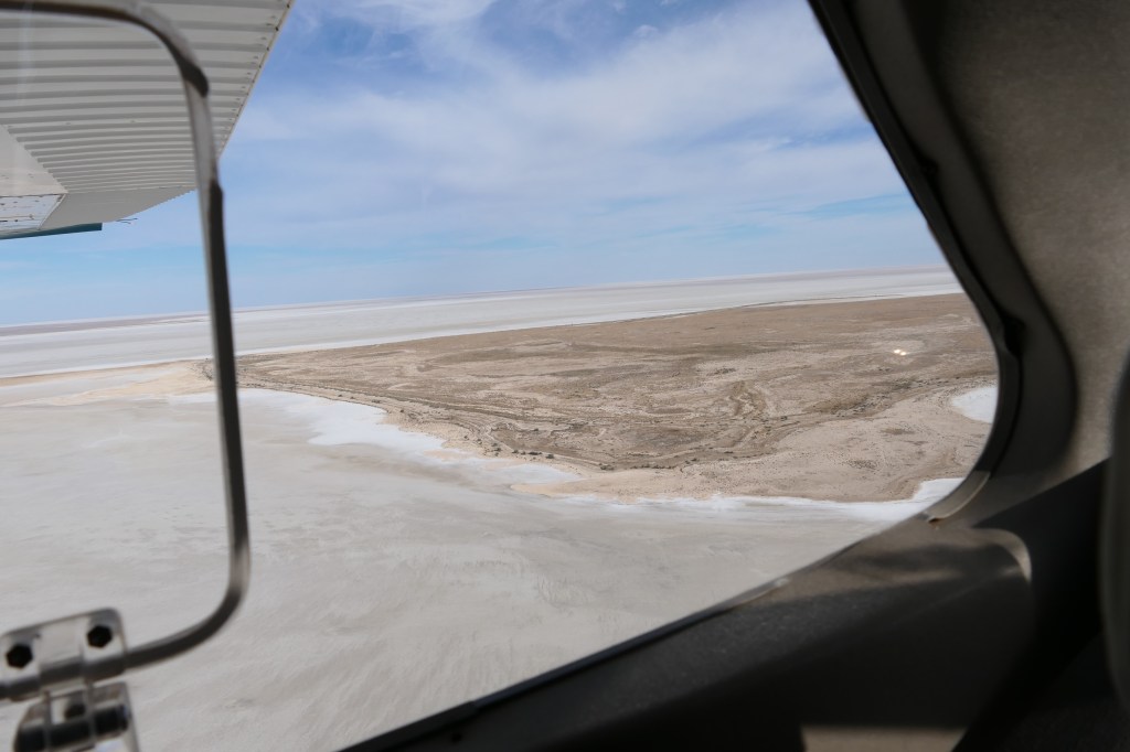 We treated ourselves to a flight over Lake Eyre, no water but still an amazing experience & our pilot did a great job with hardly any bumps. William Creek is surrounded by Anna Creek Station which happens to be the largest working station in not only Australia but the world, it is 23,677sq klm which is slightly larger than Israel. There are scattered water points/or dams approximately every 10klms, we saw a few cattle at some of these on our flight. The following photos are taken while flying over north & south Lake Eyre – it was a great experience.