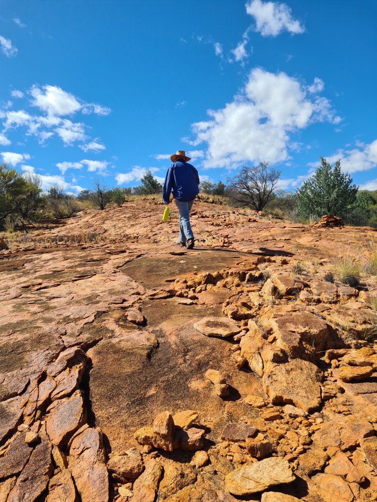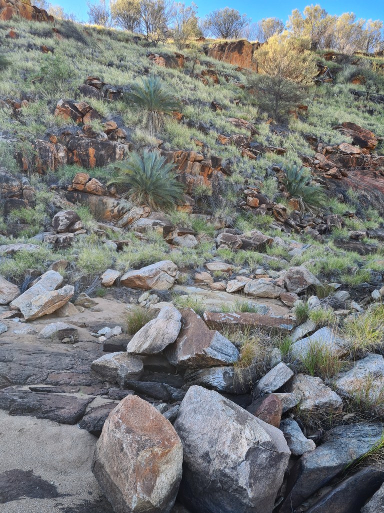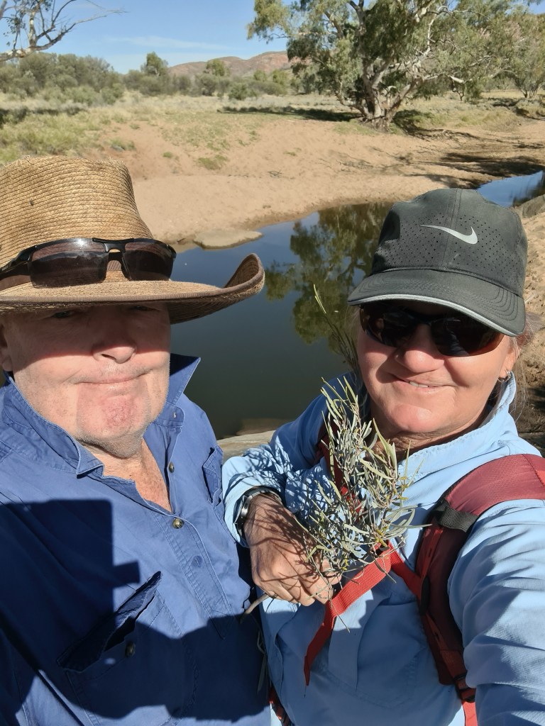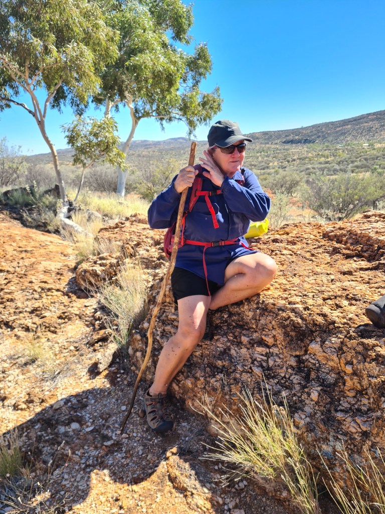 May 14th – We have now been here 2 weeks & have managed to do a few enjoyable walks, when we have clients depending on the group we usually only do a small walk ip Drover’s Hill, bit steep but not real long, when no clients we usually go for a few hours which we have managed to do the last few days. The flies are quite big in numbers but a small branch does the trick, there are quite a few cattle around so we have to expect to have flies. We have walked/staggered up some steep rocky hills so far without too many injuries so life is pretty good. We walked out along the creek yesterday & found a few small waterholes, not sure how long there will be water there for but one hole looked quite deep, I found quite a few fish, little fellows up to about 30cm long & heaps of tadpoles.