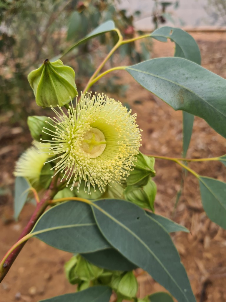 Sunday 11th June, 2023 found us at the Alice Springs international airport collecting Peter’s eldest daughter Catherine & her 2 & a half year old daughter Georgia. It was awesome to see them again & looking forward to having them both spending a week here at Hamilton Downs Youth Camp with us. The red gums were flowering in the airport carpark so I had to take a pic – they were quite beautiful.
