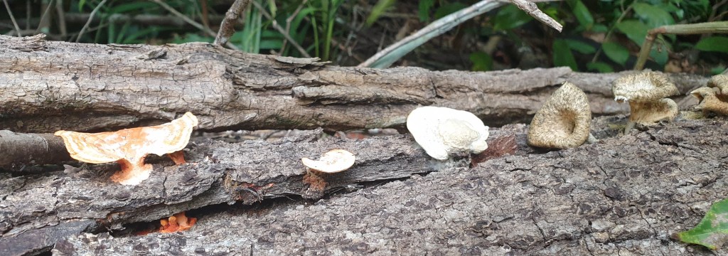 Christmas 2020 – Iron Range Research Station, a bit cloudy & we will probably get more rain as we have had 57mls early this morning. Slept in, scrambles eggs for breakfast then we went for a walk over to the orchard, lotz of sweating involved, lotz of march flies but lotz of fungi. Its approx 4 klms but the hills are quite steep so the heart rate is definately high, but its good & we are improving all the time. We are planning on lighting up the BBQ & getting some coals to cook our lamb roast in, hopefully we will find some dry wood after the downpour early this morning, going to cook up some mince & veg in the other camp oven as well – thats the plan at this stage.