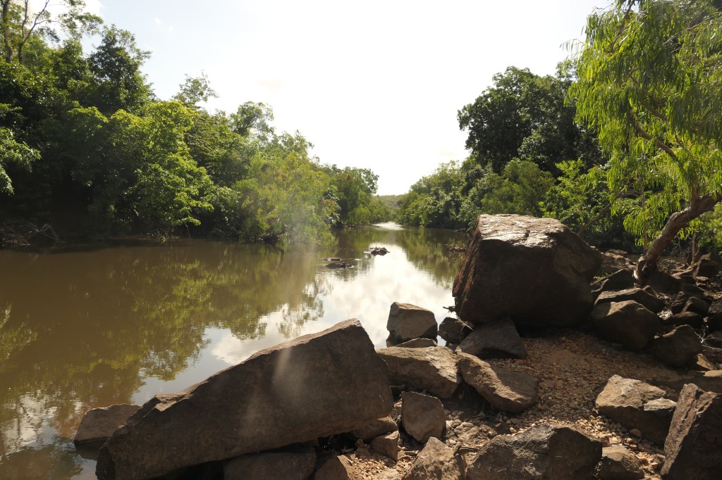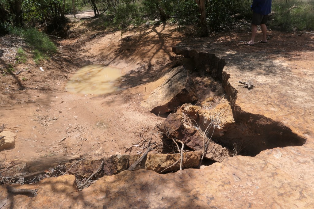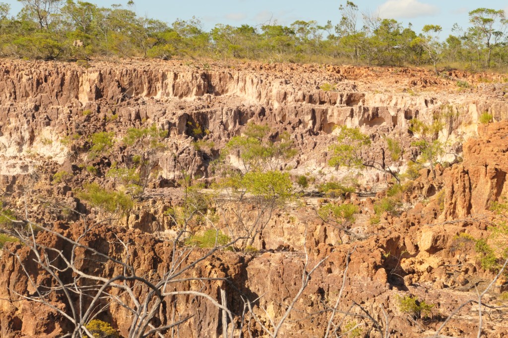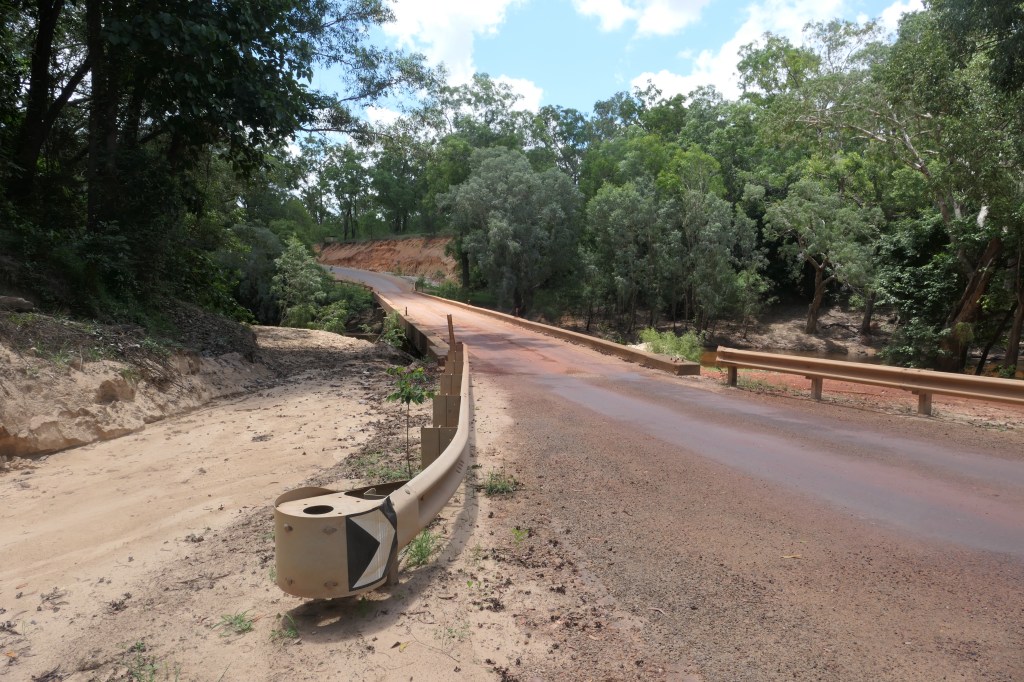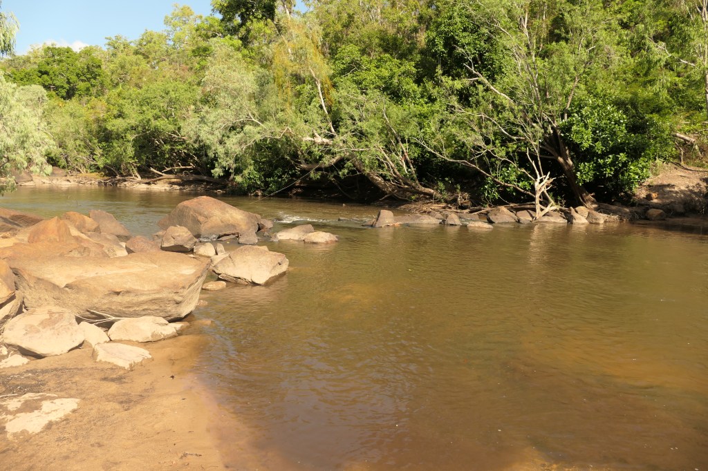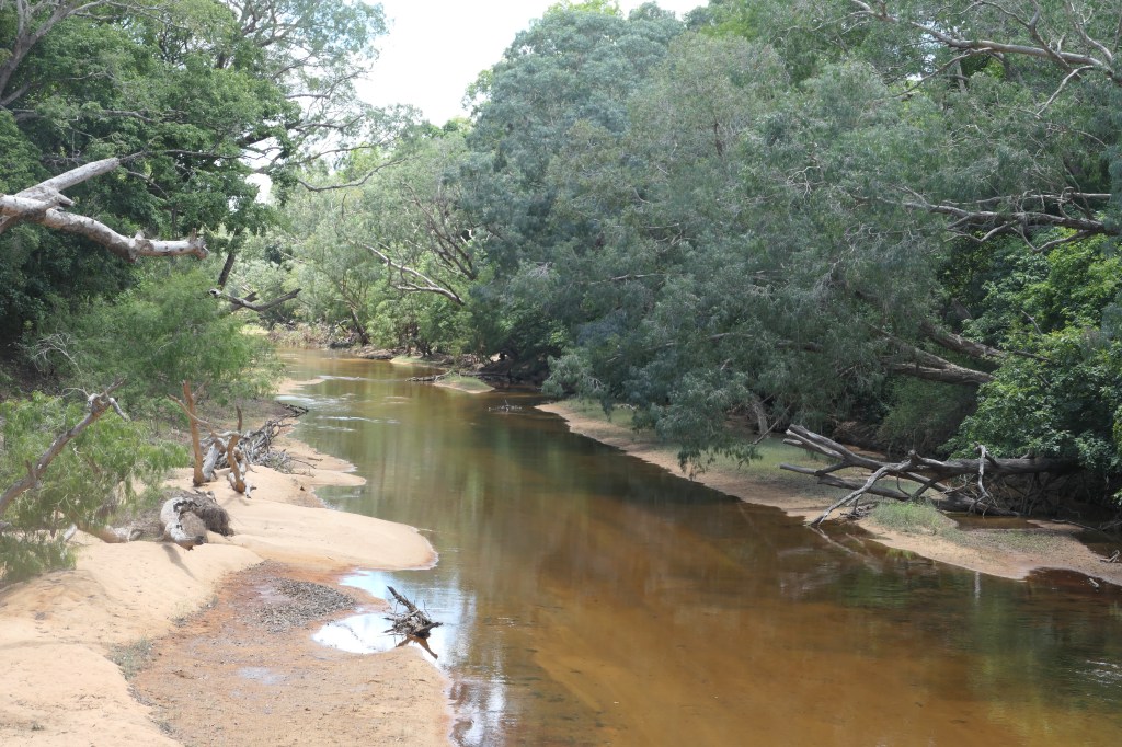 This last weekend (Fri 11th/Sat12th), we drove to Weipa. WOW! did the skies open along the way, we nearly turned back just in case we couldn’t get back, but we perservered – the rain was very intermittant & heavy at times. Once we got onto the Weipa road(Penisula Development Rd), the rain really pelted down, still intermittant but very heavy. Kept raining most of afternoon although I don’t think it rained much overnight. Saturday, after breakfast & a little bit of shopping we were off, we took the Batavia Rd, 75 klms from Weipa which took us to Bativia Station which backs onto the Development Rd heading north to the “tip”. We wanted to have a look at Moreton Telegraph Station as we were ‘caretakers’ there from January to April in 2013 – quite different from when we were there, the Wenlock was always in flood, either over the bridge or just under so seeing it like this was great.