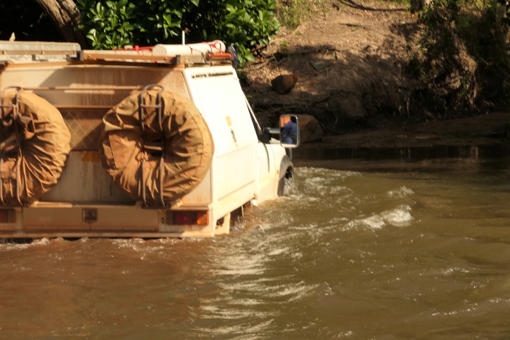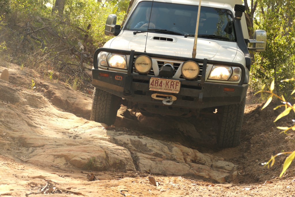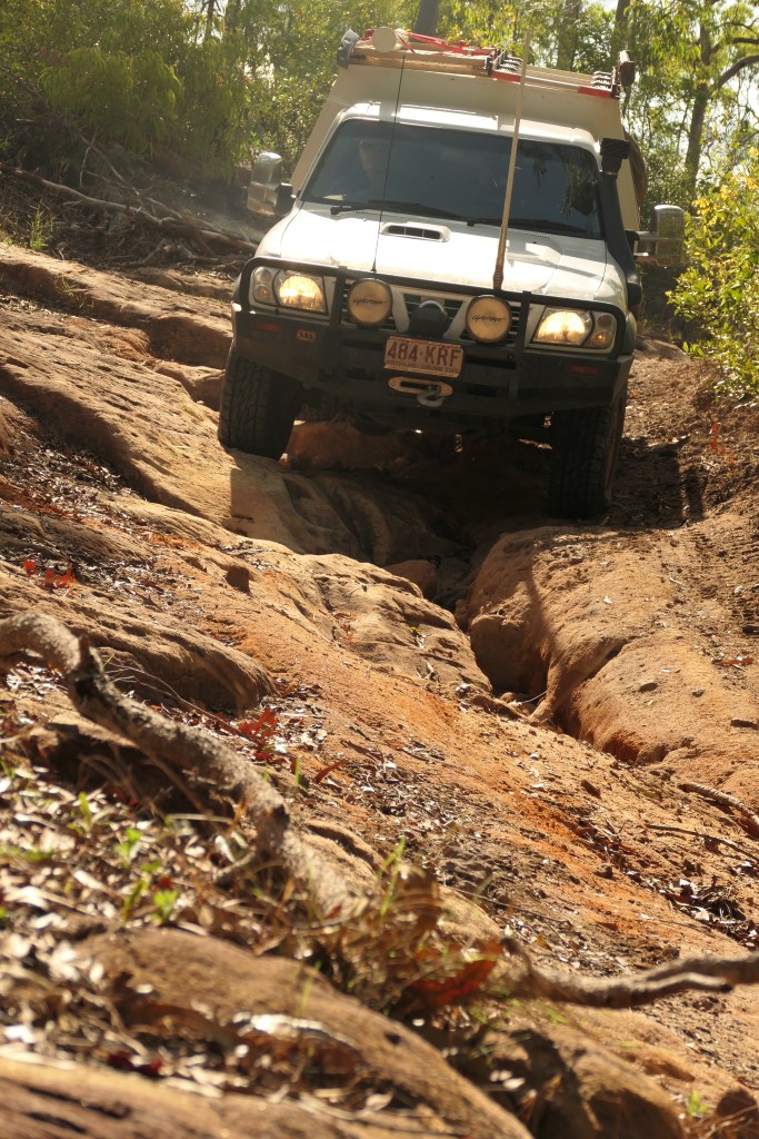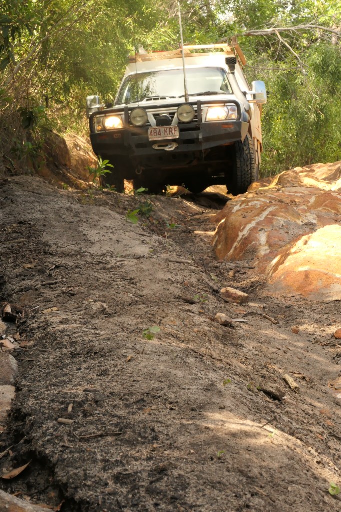 Definately didn’t want the tyres in that washout.Did a bit of slipping & sliding but all ended well at this stage.Now for the next stage.Just about down to the water.The Pascoe River – haven’t seen any crocs but will be keeping eyes peeled.Definately did a bit of walking on this crossing, I obviously didn’t walk the same place as Peter because the 3 times I walked across the river it came up to my waist…haha.Woo ho, now all there is to do is to get up the other side.Doesn’t look pretty but the ‘old girl’ should be ok.Nearly there. The view from the top was awesome. We conquered the Pascoe River & survived. 🙂