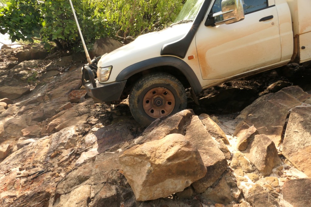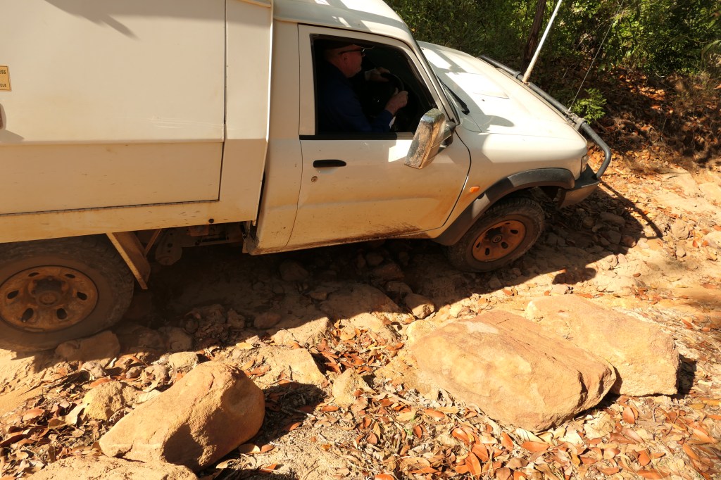 It was definately a bit ‘hairy’ heading down to the Pascoe River, big rocks & washouts, Peter did a great job manouvering the ute down. We did walk down first & walked across the river then up the other side just to make sure we weren’t dreaming that we could do it, its always a good idea to have a look & check out where you have to go then decide which way you are going to do it.