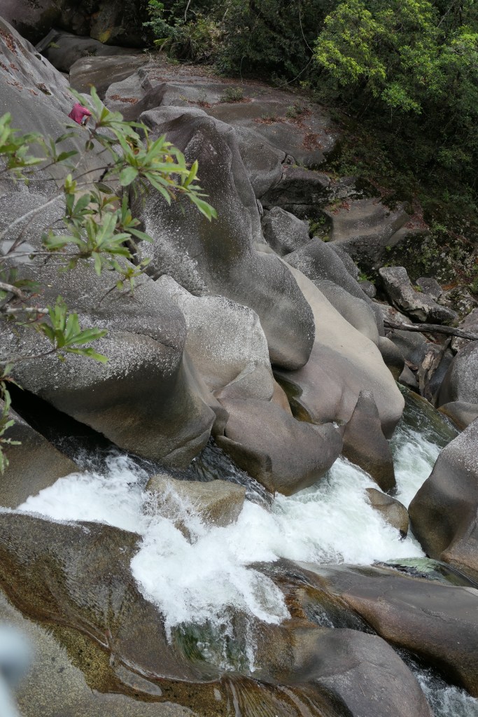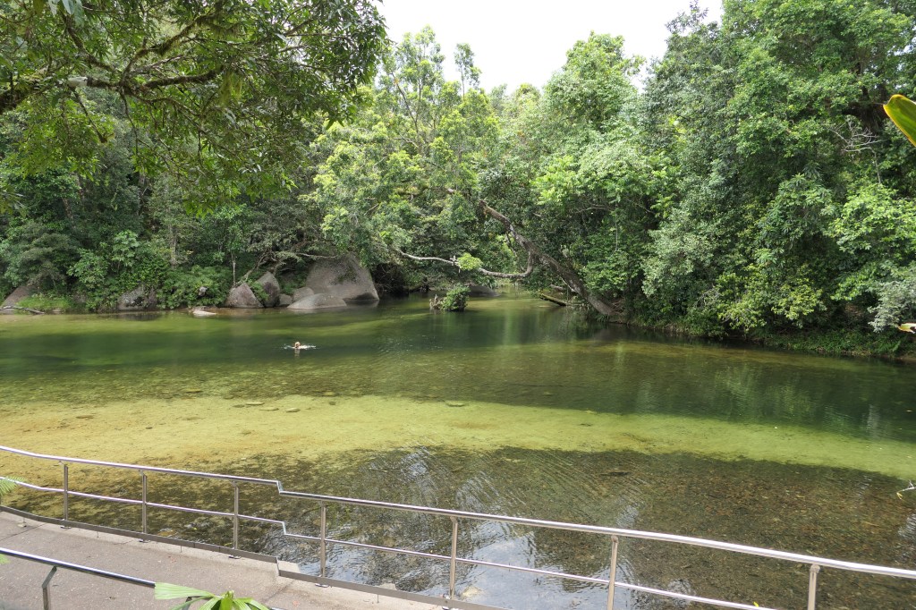 Back to Cairns, we went to a delightful resturant on the water(boat mariner) & shared a great meal. We organised a few things in Cairns then we went south again, 1st stop – Bramston Beach, WOW! what a beautiful spot, we camped about 30m from the high tide water mark, there were hundreds of starlings nesting in one particular tree, we didn’t park too close to them. Next day we called into Babinda for a coffee, apparently Babinda & Tully vie for the ‘wettest town award’ every year. We drove out to the boulders, had a few light showers of rain but we still did the small walk, quite a spectacular area & very beautiful but also dangerous if you venture where you shouldn’t.