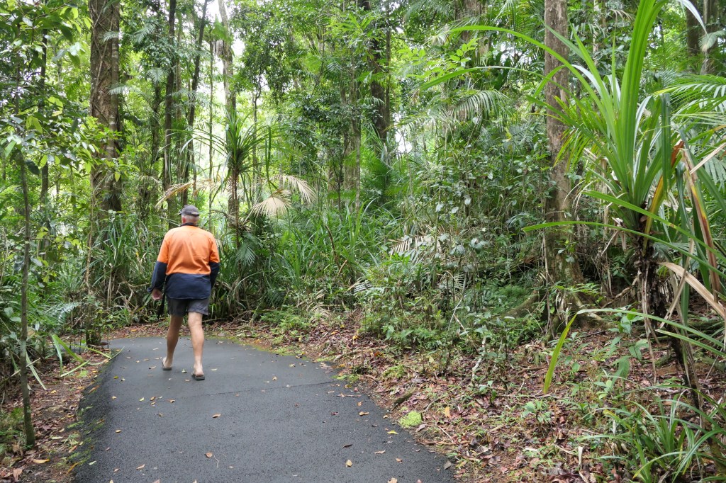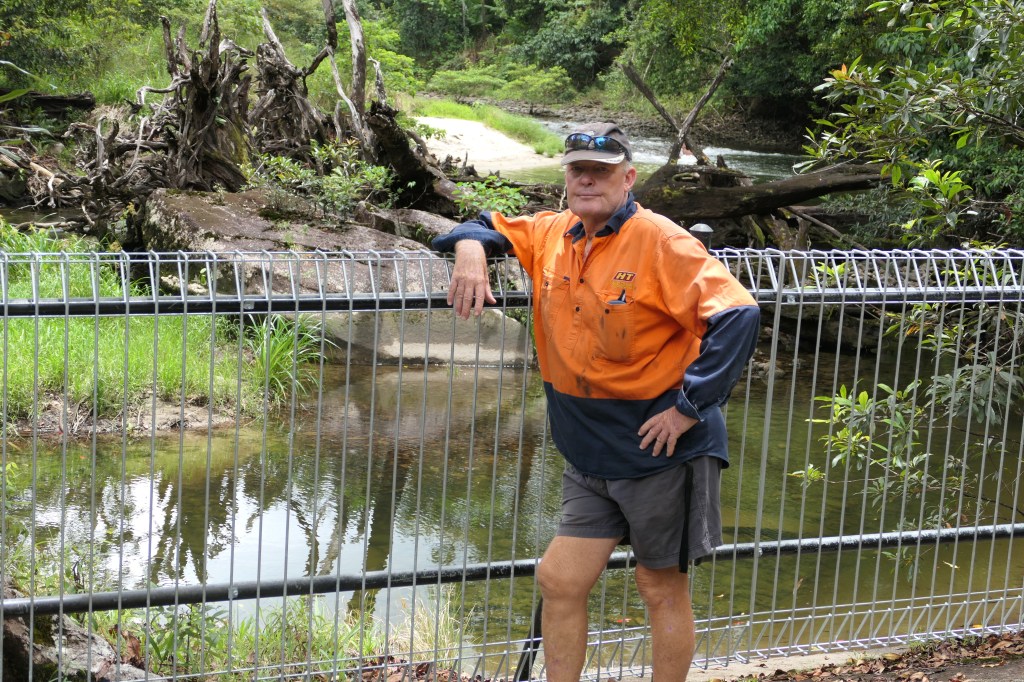 Our new home for the coming wet season. Its a privately owned 8oo acres of mainly rainforrest trees, different researchers come here to look into rainforrest regeneration & also bird watchers love it. Quite a beautiful place, we have only looked at a small area but will discover new things along the way. The houses are called ‘pods’ – pod 1 – 2 bedrooms own ensuites & big veranda: pod 2 – 3 bedrooms, 2 bathrooms, office, storeroom & lounge room. We are in pod 1. The outside area is all open but under roof except for half of the kitchen (mainly where food is kept & fridges, it is in area like a lockable carport – works well, a roller door keeps the critters out at night, the cooking part of the kitchen is in the open area, simple but effective & cute. It is run totally on solar although there is a generater for back up if required & also the water is pumped up to the pods tank from a bore half way down the driveway by the backup generator – works well.