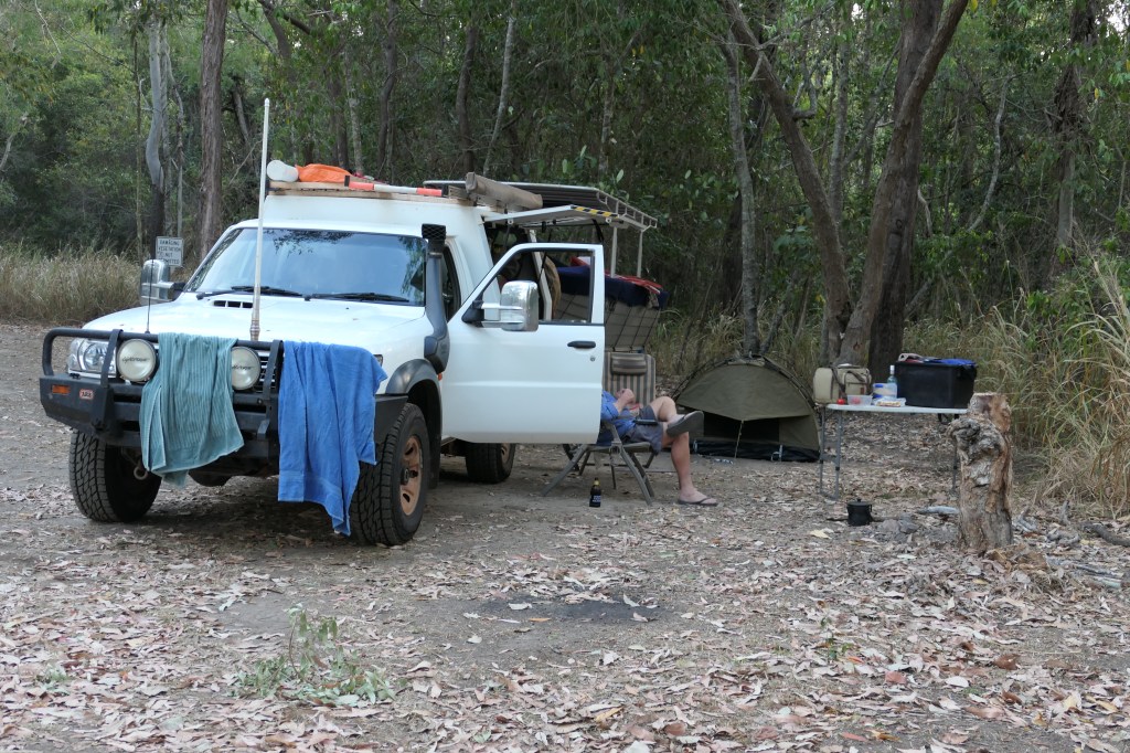 Our 1st night we camped up at a free camp just outside of Mt Molloy – Rifle Creek rest area, a great spot, good toilets & a cold shower which was refreshing. We managed to have a little campfire & thanks to Danny & Julie we were having ‘coral trout’ for dinner. We had an enjoyable night under the stars in our swag, it was quite a busy camp spot but there was heaps of room.