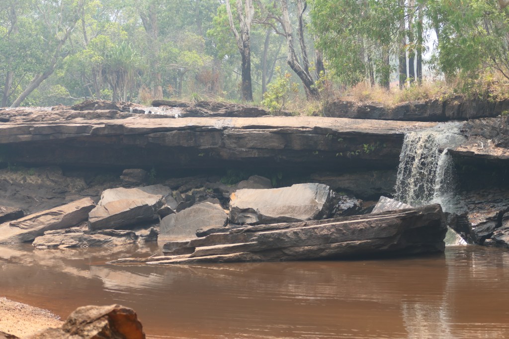 Drove out next day & passed lotz of sugar cane being harvested & then transported on the small trains with lots of cane aboard. We drove along Battlecamp Road which was really good, came across Isabella Falls – quite a pretty place, would be awesome with more water but there was a small fall still running, this is near where the first lot of gravel was beginning so it was a good spot to let some air out of the tyres.