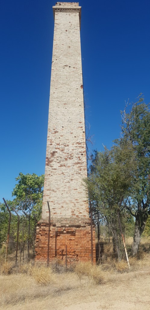 Not long after Croydon we passed a few riders moving their moos to a different location along the highway.Crossing the Etheridge River at GeorgetownSpent the night with great mates – Jenelle & Darren who are managing the Goldfields Caravan Park.“Garfield” – the caravan park cat, 14 years young.Had a couple of butcherbirds & babies hanging aroundAlways the bower birds make their presents felt.Party time…………lotz of fun.The morning after…A couple of families of wild pigs enjoying the water & waters edge.Peter checking the pigs out.Called into Cumberland Chimney & Dam, approximately 20klms west of Georgetown on our return trip – quite a lovely spot.Last nights dessert which didn’t happen so enjoyed it with a coffee at this quite amazing spot. Jenelle is a fantastic cook. 🙂Snazzy looking ablutions although I did not test them out.This was seen on both sides of the road to the Cumberland Chimney.
