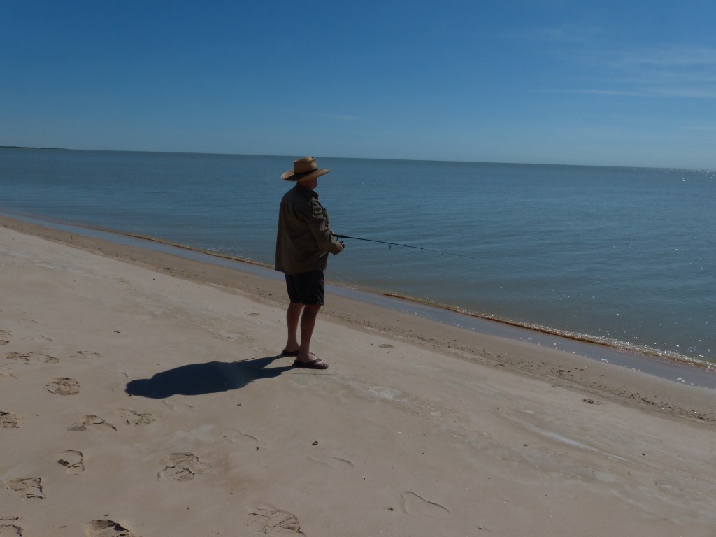 We drove to Karumba about amonth ago, got most awesome fish & chips so yum, took them to a different beach than last time – beautiful spot, we even took a rod & threw a few lures – no joy, so we walked up the beach to a rocky area, while there we were greeted by the local police – You should not be here, even though I had proof we drove to Karumba for work, they said you not allowed on beach & DEFINATELY no fishing. Karumba has not been very friendly for us but as of last weekend we can now drove 5ooklms so we might try Karumba again in the near future………hahaha