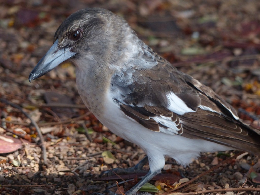 Our ‘KK’ is our home in Normanton, the beginnings of our vege garden on the right hand side with “mr moon” watching over us.Decorations inside our KK – supposed to assist with bug control, we don’t have mosies inside BUT we do have stink bugs, apparently everyone has them here, so weare not special…….Our vege patch is progressing, sunflowers growing really well.Poor old pumpkin seedlings getting demolished by the pumpkin beetle.The pumpkin seedlings prior to their demolition (background) Happy hour while the sun going down at camp, doesn’t happen too often usually still working.I had a friend in the shower with me.Karumba, such a beautiful spot. So love my pelicans – such a graceful,beautiful bird.Heaps of bait fish around.This hermit crab had no intentions of leaving his home while I was holding the camera.On the way back to Normanton, we saw quite a few families of brolga’s, these chicks nearly as big as Mum & Dad.