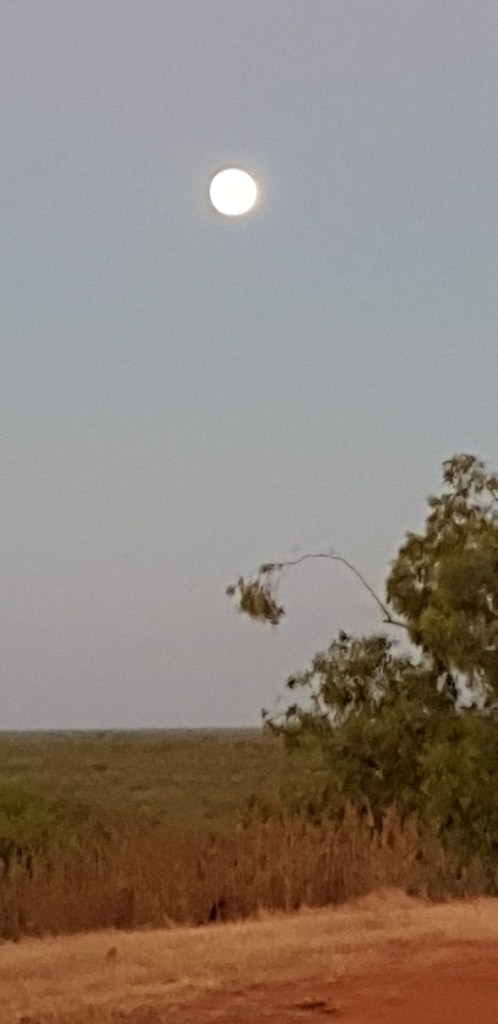 The sunsets vary from boring to exquisite, of course I never seem to have the camera or phone handy at the right time…….. The full moons are amazing.
